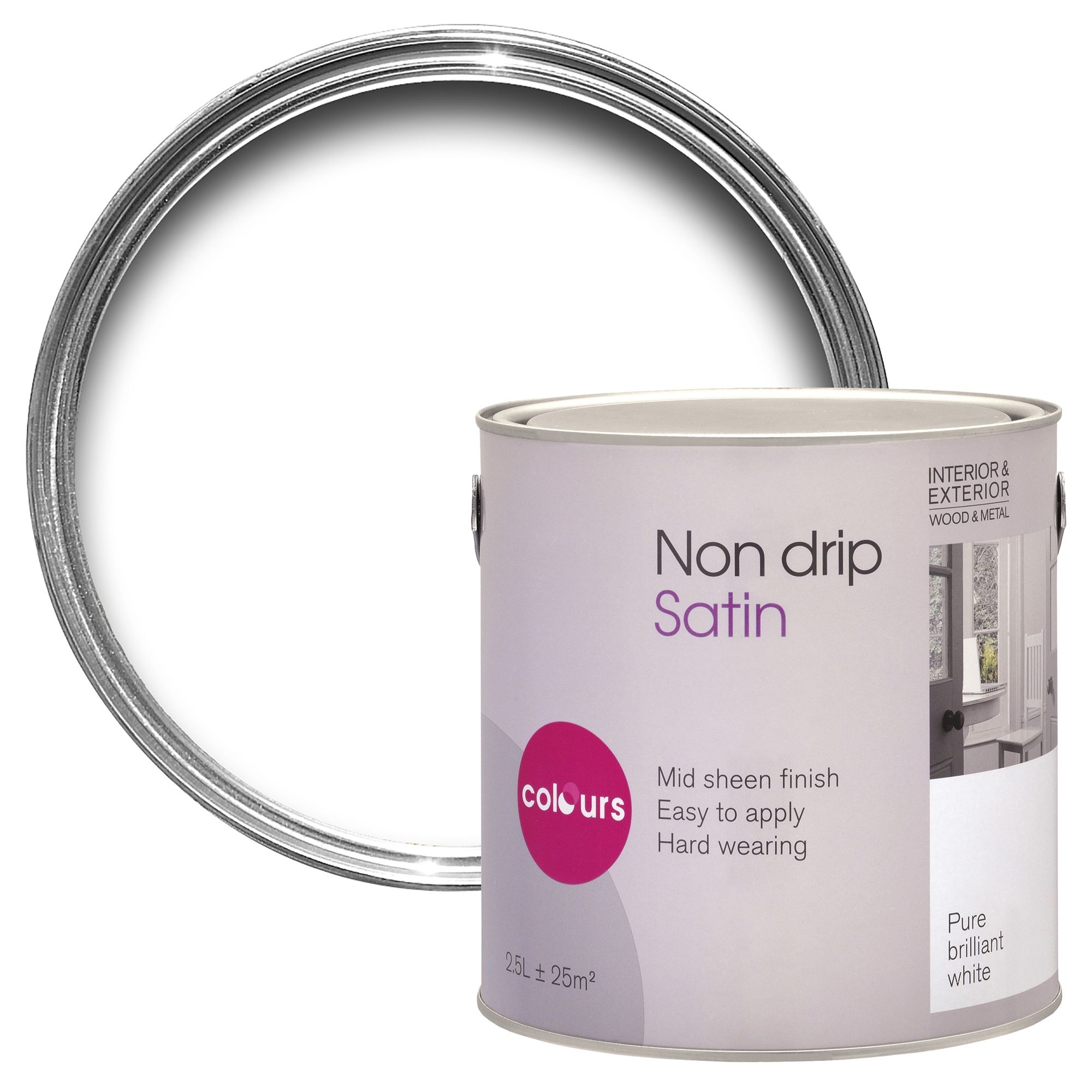 Colours Pure brilliant white Satin Wood & metal paint 2.5L DIY at B&Q